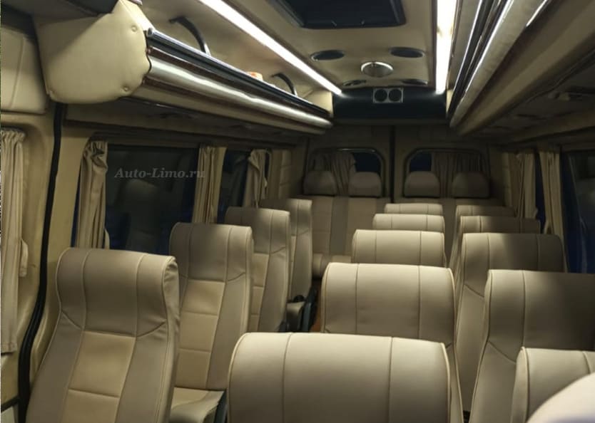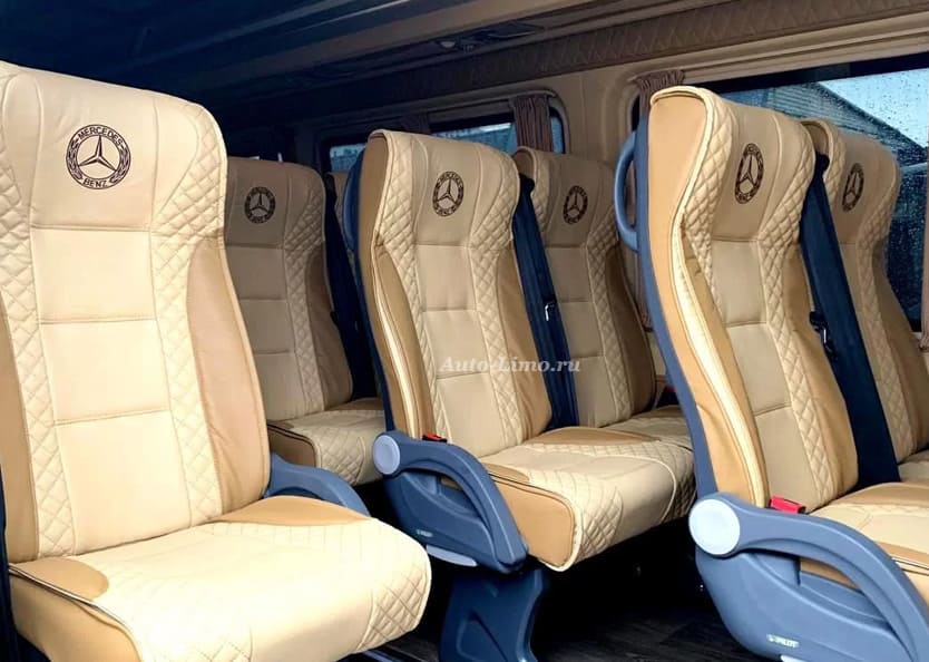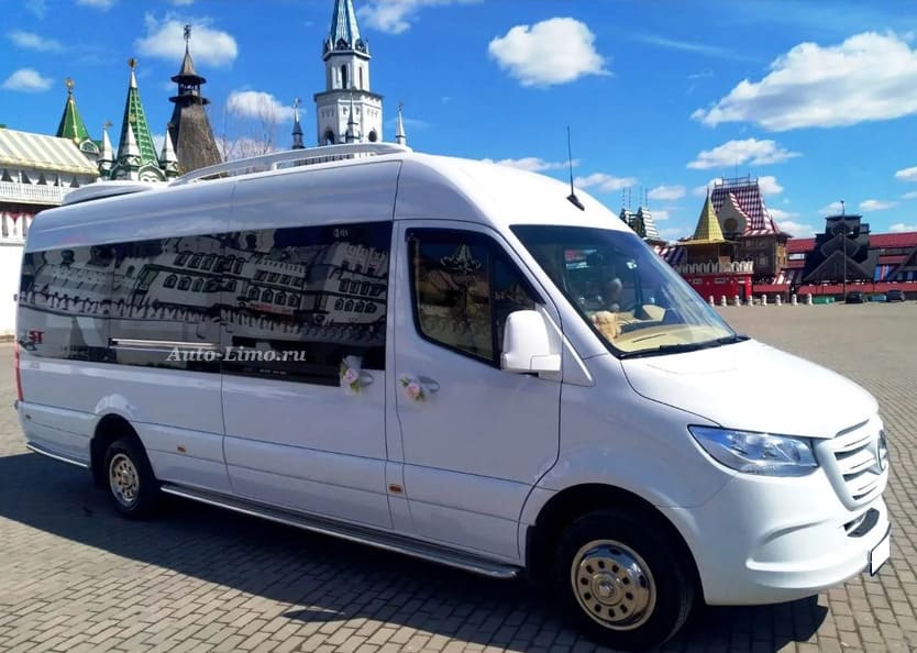 Аренда микроавтобус Мерседес Спринтер на 19 - 20 мест! Белоснежный Mercedes-Benz Sprinter на свадьбу в Москве! С эргономическими сиденьями из комбинированной кожи бежевого и черного цвета. Для максимального комфорта сделан климат-контроль, кондиционер с индивидуальным обдувом каждого пассажира! Вместительный пассажирский автобус подойдет для трансфера в аэропорт Внуково, Шереметьево, Домодедово, Жуковский и перевозки гостей на свадебное торжество, иностранных туристов и других групп людей. Немецкий транспорт расчитан на 19 - 20 посадочных мест! Неоновая подсветка потолка и подиума! Огромные панорамные окна, дополнительный багажный отсек, полки с техноблоками, люк, дизайн отделки классик и программированное освещение, трехточечные ремни безопасности, электрический привод боковой двери, микрофон для гида! 19 мест в салоне и 2 рядом с водителем! DVD-проигрыватель с ЖК-телевизором, помогут расслабится при поездке возможно слушать любимую музыку или посмотреть кино в дороге. Заказ Спринтер на 19-20 человек, востребованная услуга для проведения мероприятий! Возможно заказать автомобиль для выезда за город, а также для того, чтобы быстро и с удобством добраться на вокзал. Вы можете взять машину на сутки, что очень удобно. Представленная модель авто примечательна не только своим внешним видом, но и внутренней комфортабельностью, великолепный автобус на 20 мест поразит множеством невероятных эффектов и красотой!