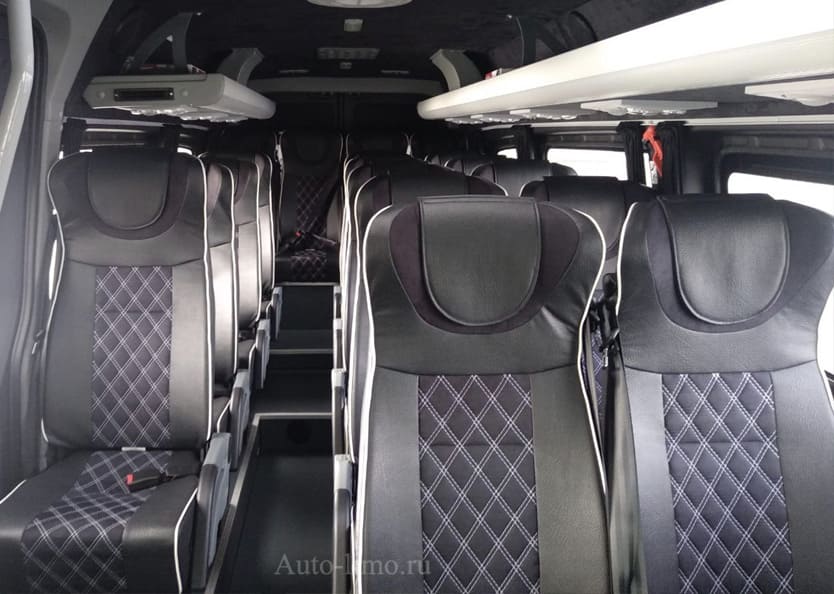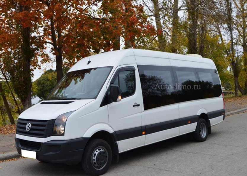 Заказать микроавтобус Фольксваген Крафтер на 18 - 20 мест! Volkswagen Crafter белого и черного цвета в Москве! Немецкий микроавтобус на 20 посадочных мест! Чистый салон с эргономическими сиденьями, выполненный из комбинированной кожи бежевого цвета. Для максимального комфорта каждого пассажира сделан климат-контроль, кондиционер с индивидуальным обдувом! Неоновая подсветка потолка и подиума! Огромные панорамные окна, дополнительный багажный отсек, полки с техноблоками, люк, дизайн отделки классик и программированное освещение, трехточечные ремни безопасности, электрический привод боковой двери, микрофон для гида! Вместительный микроавтобус, специально предназначенный для перевозки гостей на свадебное торжество, иностранных туристов и других групп людей. Микроавтобус рассчитан на 20 мест. 18 мест в салоне и 2 рядом с водителем! DVD-проигрыватель с ЖК-телевизором, помогут расслабится при поездке – можно слушать любимую музыку или посмотреть кино в дороге. Заказ Фольксваген Крафтер на 18 - 20 мест ― востребованная услуга для проведения мероприятий! Возможно заказать автомобиль для выезда за город, а также для того, чтобы быстро и с удобством добраться на вокзал. Вы можете взять машину на сутки, что очень удобно. Представленная модель авто примечательна не только своим внешним видом, но и внутренней комфортабельностью, великолепный автобус на 20 мест поразит множеством невероятных эффектов и красотой!
